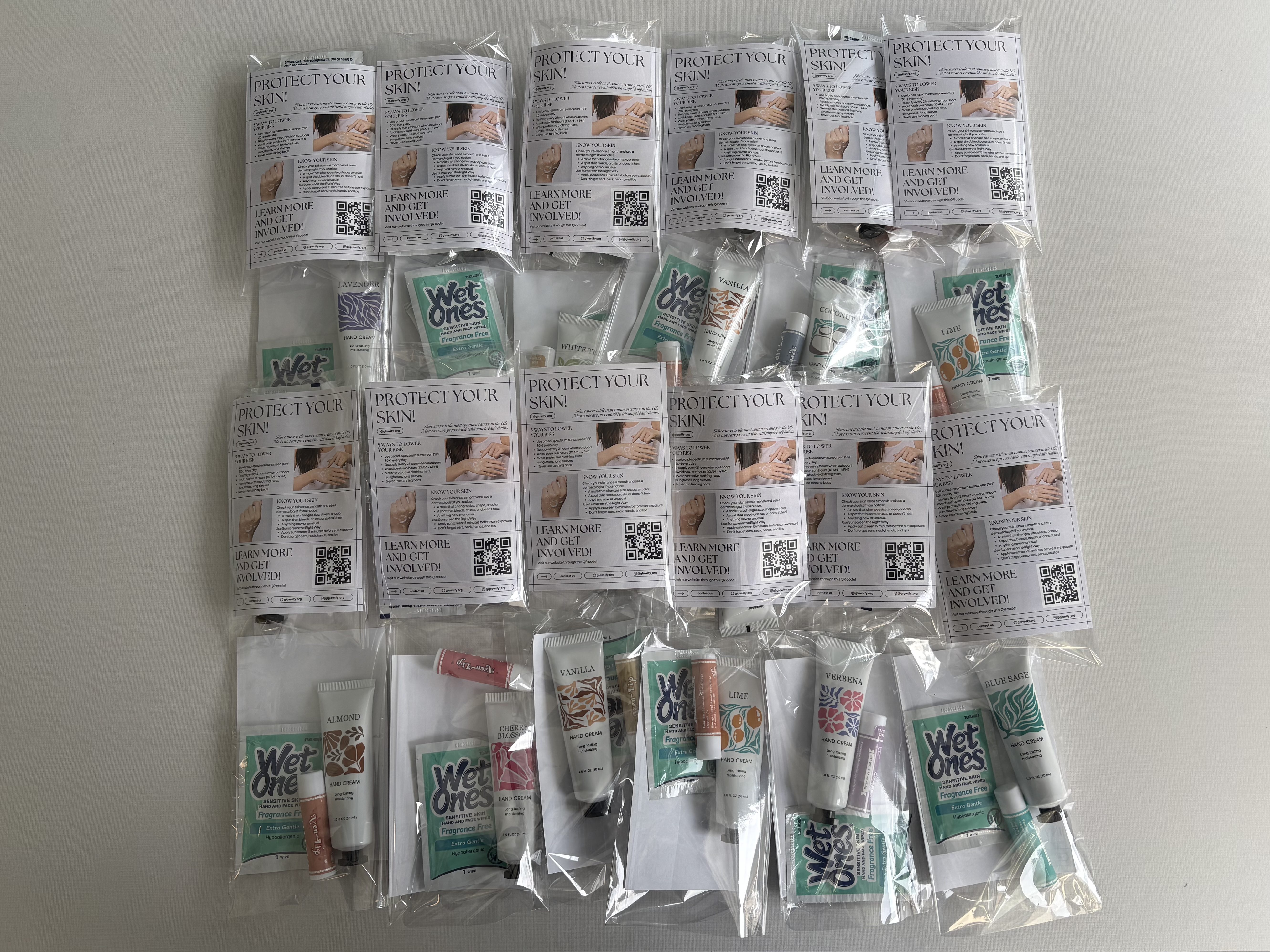 We provide skincare kits to individuals experiencing homelessness in New York, each including sunscreen, moisturizer, lip balm, and soap. To support long-term skin health, every kit also contains a simple guide for caring for skin in different weather conditions.